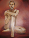 2007Vooraanzicht vrouwelijk naakt in het rood.